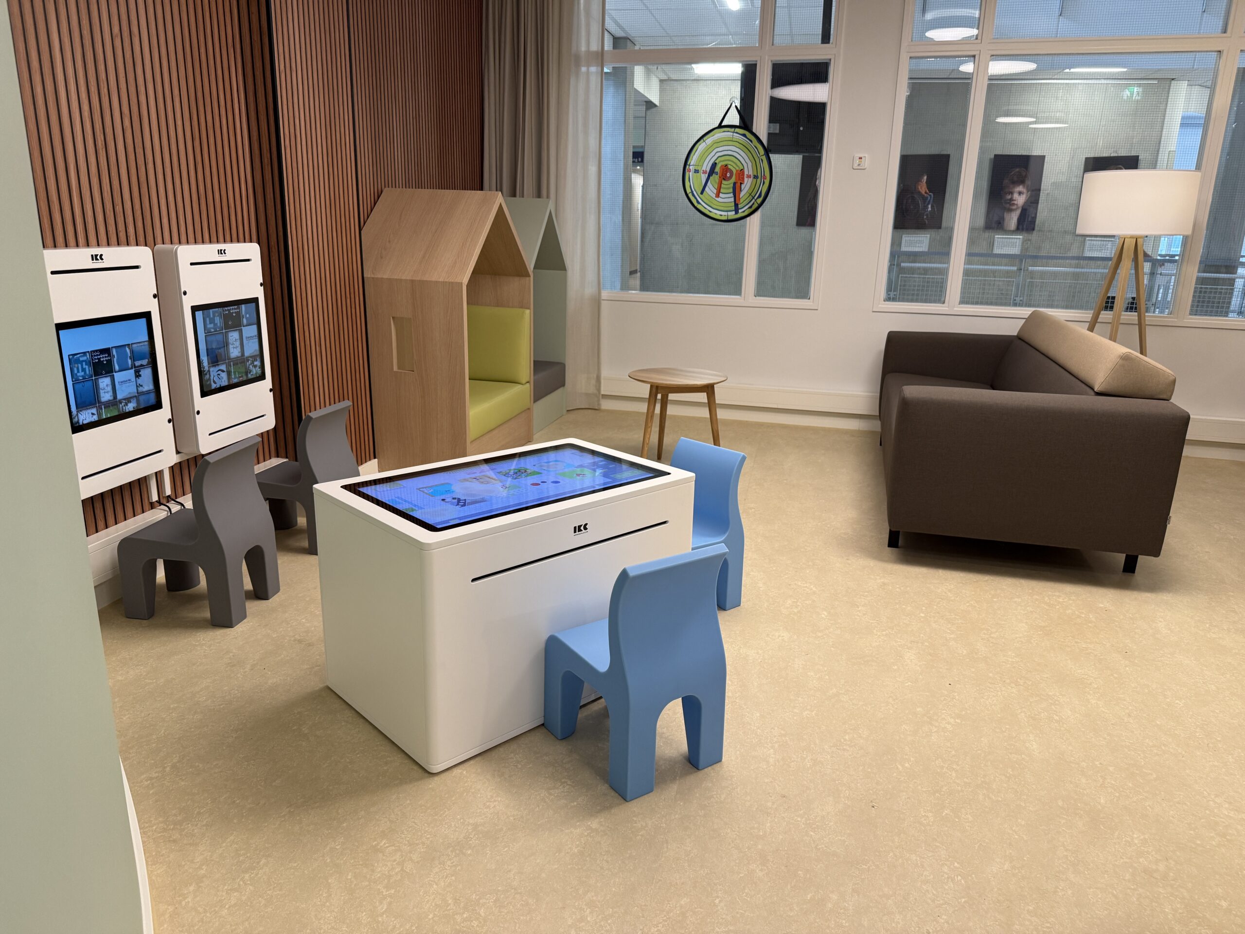 De lounge heeft verschillende zithoeken en speelmogelijkheden voor kinderen van alle leeftijden. In deze huiselijke en ontspannen omgeving kunnen kinderen spelen, bewegen en samen met hun ouders wachten tot het moment van de operatie. Hierdoor voelt de overgang van thuis naar het ziekenhuis minder spannend en ervaren zowel kinderen als ouders meer rust.